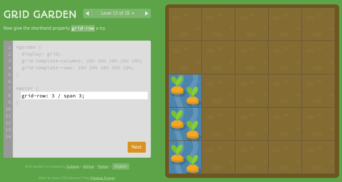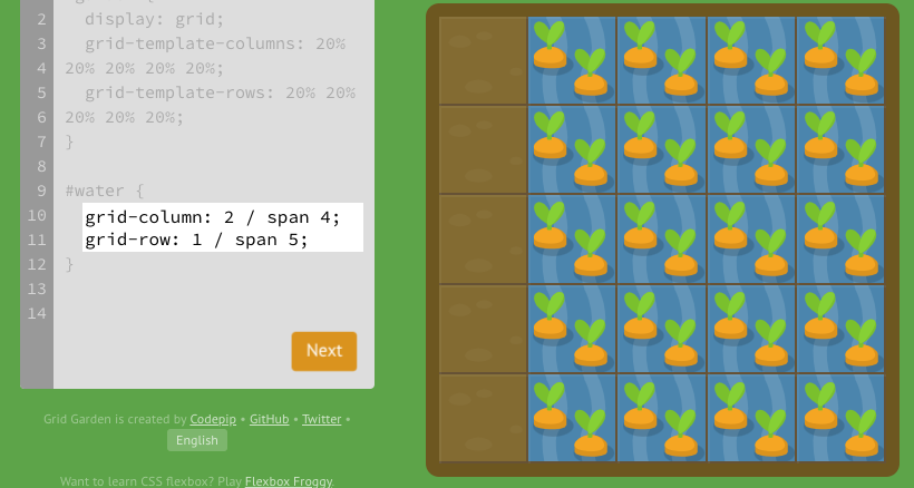 spankeyword it will end that many columns away from your start:grid-column-end: span 5;means keep it across 5 columns no matter where you start (as opposed to justend: 5means stop at column 5 specifically)- You can do thte same thing with
