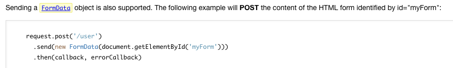 res.bodyis the parsed object. For example, if a request responded with the JSON string{"user":{"name":"tobi"}}, thenres.body.user.namewould be"tobi".- For multi-part form data, there’s a