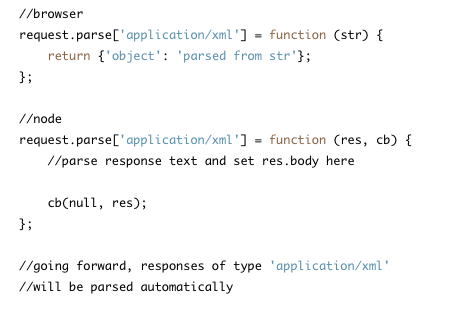 The superagent will parse known response-body data and you can set up automatic parsing for other response-body data like this:
