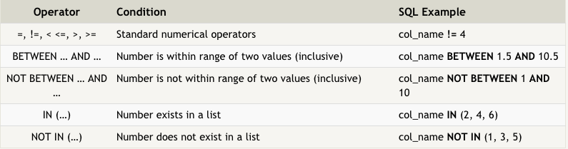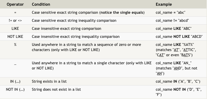 Here are some operators that can be used for text columns:
